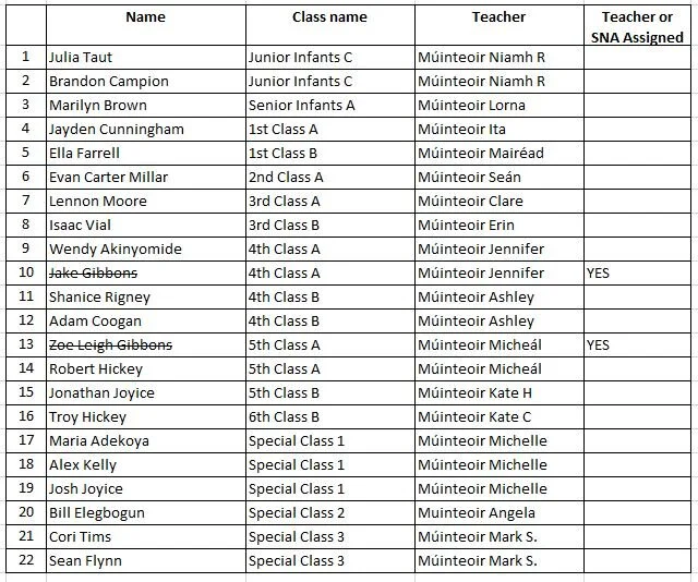 Below are the names of the children whose parents are looking for teachers or SNAs to work with them as part of the supplementary program.